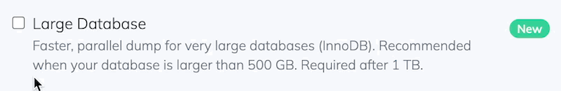Just check the “Large Database” option and optimized, parallel dump will be enabled.