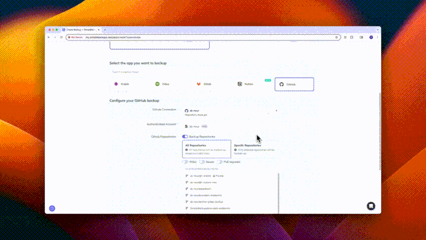 SimpleBackups provides a hassle-free solution for maintaining up-to-date backups of your entire GitHub presence, offering peace of mind and data security for developers and teams of all sizes.