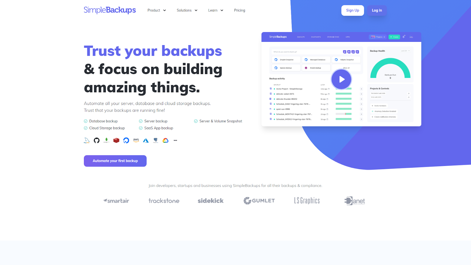 Secure your data’s security and integrity. Experience a simple, reliable, and versatile PostgreSQL backup. Try SimpleBackups now for free.
