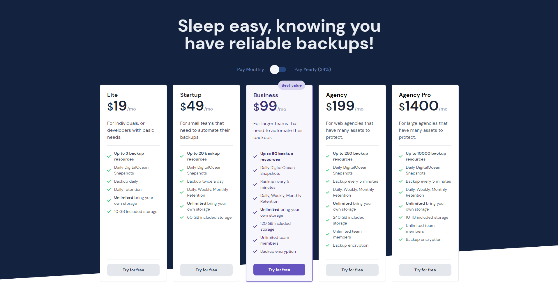 SimpleBackups offers flexibility regarding its paid plans, which vary on billing frequency and plan type. Here are the details: